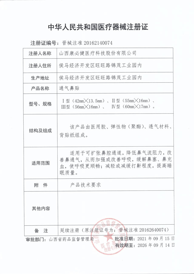 【适用范围】适用于可扩张鼻腔通道,降低鼻气流阻力,改善鼻通气,从而加强或改善呼吸,缓解鼻塞、鼻充血,使呼吸更顺畅;减轻或减缓打鼾程度,提高睡眠质量。
